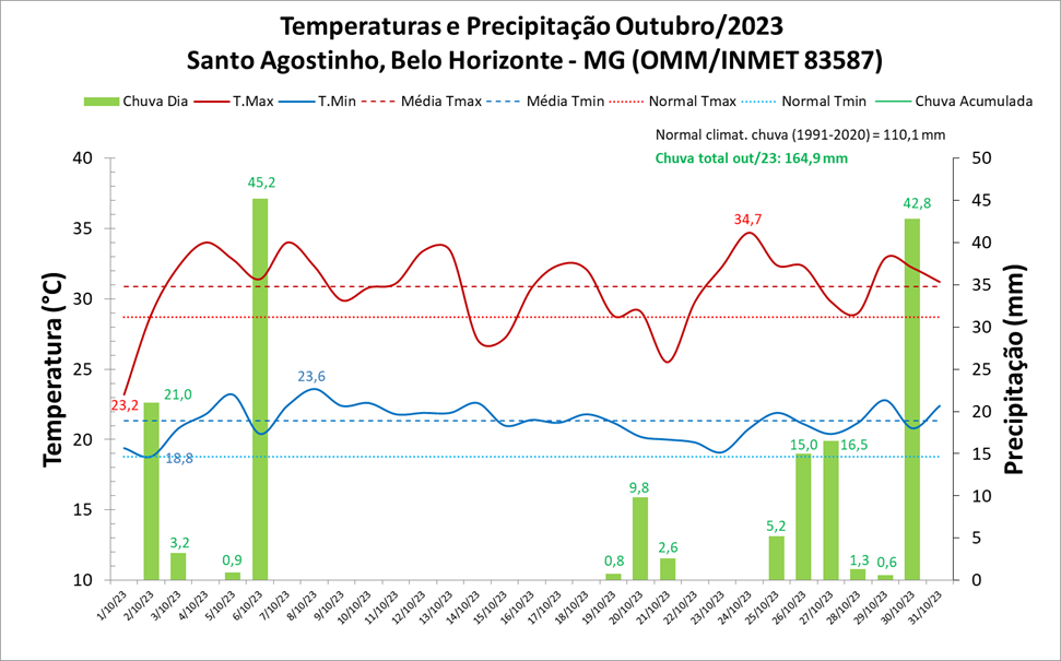 Balanço: Belo Horizonte (MG) teve chuva e temperatura acima da média em outubro/2023