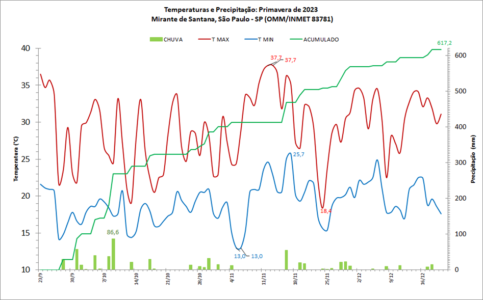 Confira os dados de destaque da primavera de 2023 na capital, pela estação convencional do Mirante de Santana: