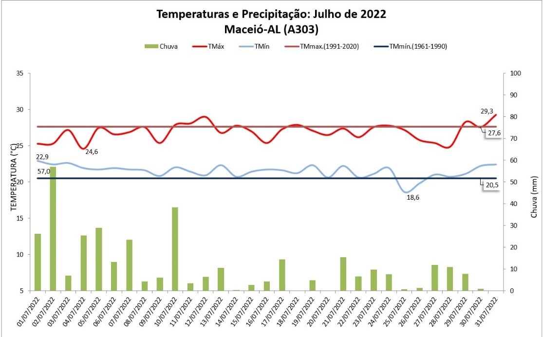 Balanço das condições do tempo em Maceió (AL) em julho de 2022
