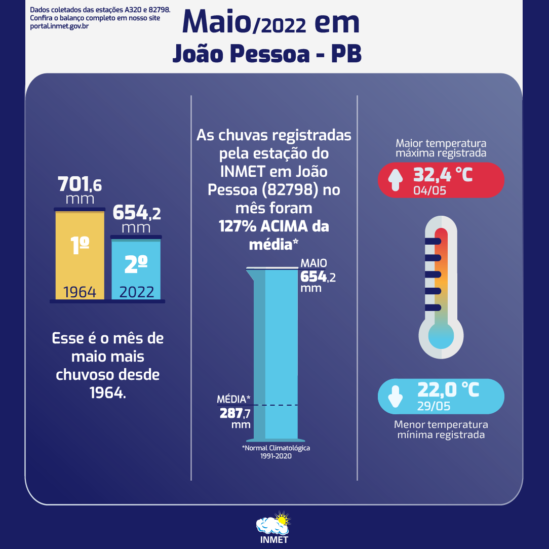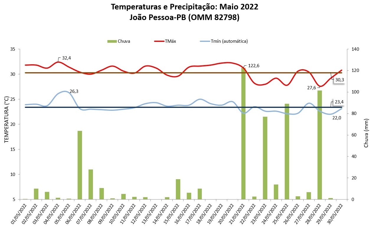 Confira o Balanço das condições do tempo em João Pessoa (PB) em maio de 2022.