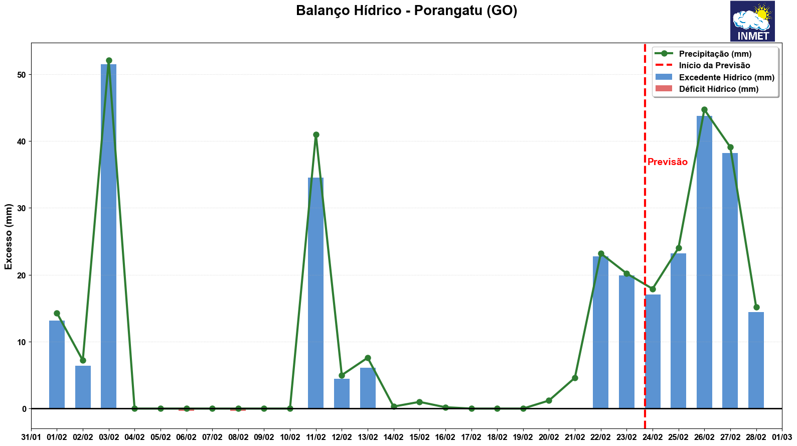 Figura 2: Balanço Hídrico Porangatu (GO) no período de 01 a 28 de fevereiro.