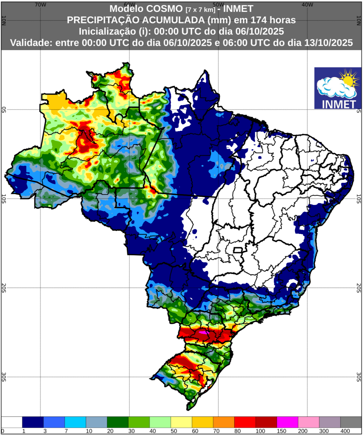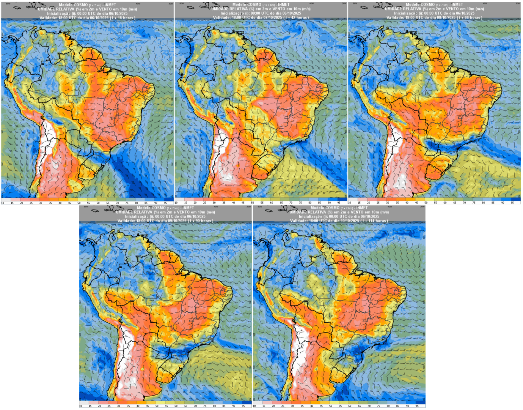 Leia AQUI a previsão completa para esta semana de 06 a 13 de outubro de 2025 e as condições observadas no Brasil entre os dias 01 e 05 de outubro de 2025 no Informativo Meteorológico nº 38/2025 (06/10).