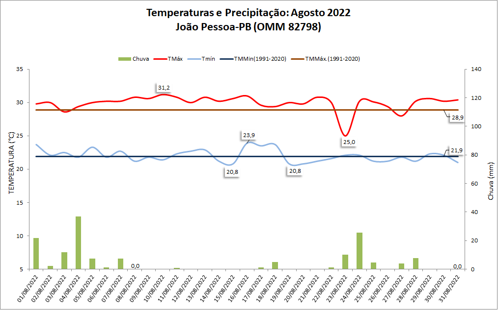 Confira o Balanço das condições do tempo em João Pessoa (PB) em agosto de 2022.